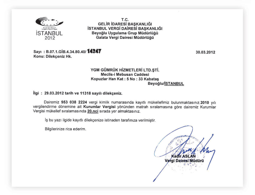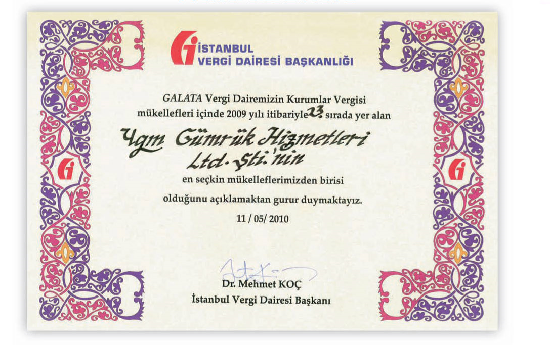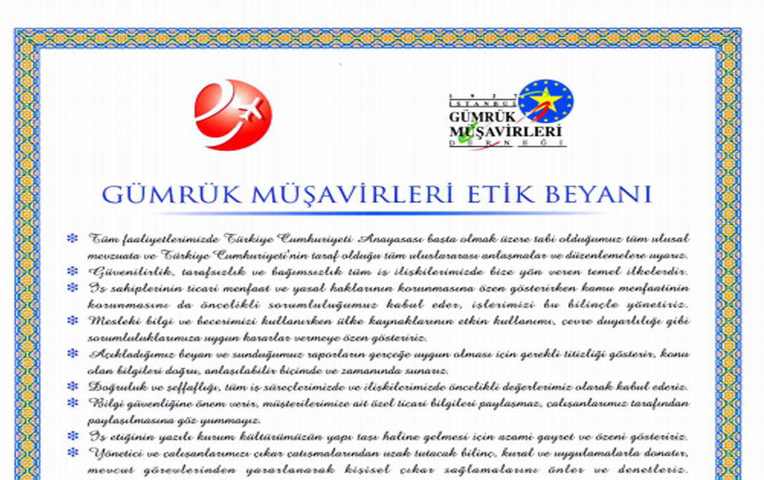 Gümrük Müşavirleri Etik Beyanı                                     2010 Vergi Dairesi Takdirnamesi